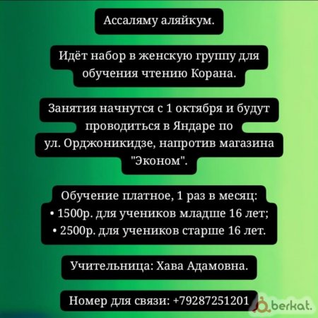 Занятия начнутся с 1 октября и будут проводиться в Яндаре по ул. Орджоникидзе, напротив магазина "Эконом".