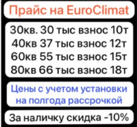 Ассалам Алейкум продаются кондиционеры Есть 2 модели Цены указаны на фото МДВ мощней и гарантия 2.5 года EuroClimat гарантия 2 года Доставка и установка бесплатная по всей Ингушетии Больше 2 этажа не ставим