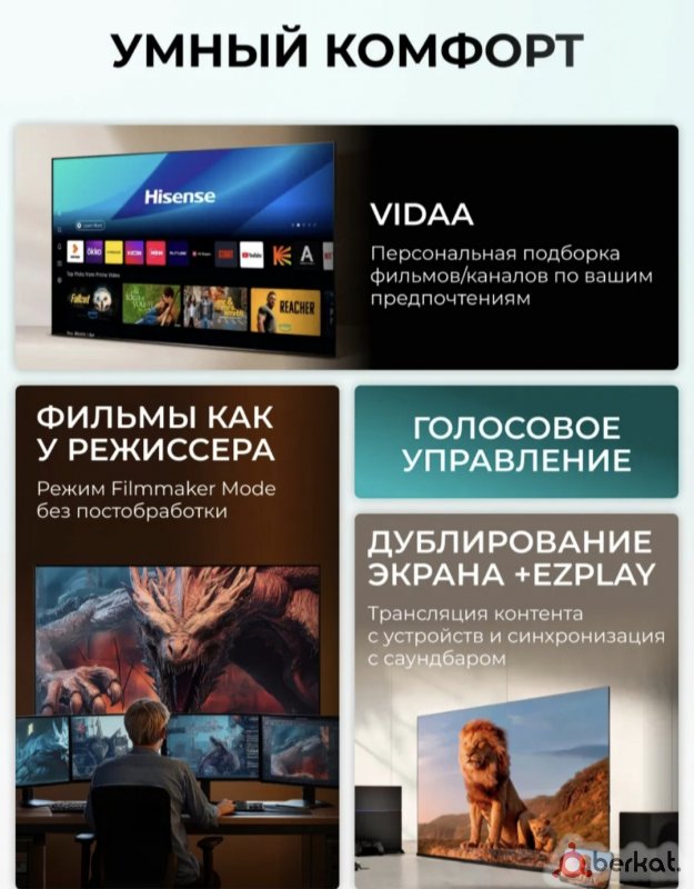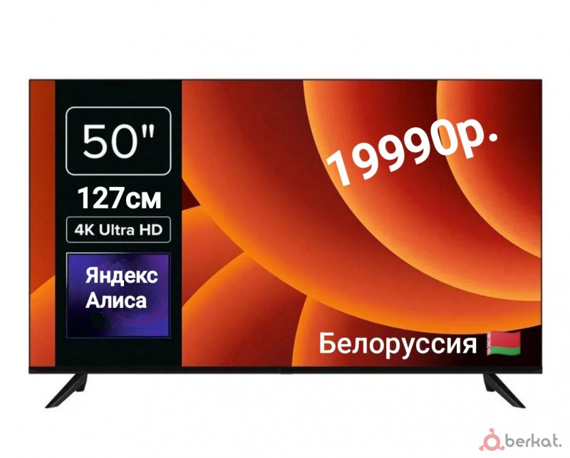 Отличное качество по доступной цене⚡ 2 оперативка 32 память⚡ Большой безрамочный экран 50"дюймов 127 сантиметров по диагонали⚡️ 4K Ultra HD экран очень красивая картинка ⚡ удобная в управлении операционная система⚡голосовой пульт⚡ Wi-Fi, VKвидео RUTUBE. ТВ каналы, бесплатно фильмы, сериалы, мультики⚡20 каналов через антенну(dvb-t2)⚡производство Белоруссия ⚡