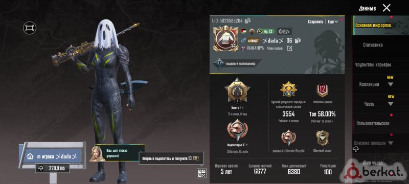 Ас'саляму алейкум .Продам мощный аккаунт в PUBG На аккаунте есть М416 ледник 6 уровня . UMP 4 ур(килл чат)Берил 4 ур . Питомец лев и также 19 прокач пушек