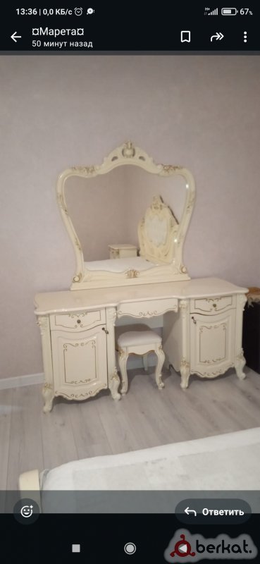 Продается мебель стояла Детском без шкафа И стекло разбита на туалетном столе рамка есть Кровать Две тумбы Туалетный стол И стул Покупали пол года назад 130т все вопросы по тел