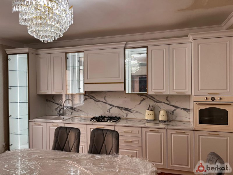 Кухня *Венеция* Цвет: Крем/Золото Ставится на обе стороны! Пр-во: Аметист!(Краснодар) Цена в рассрочку:125.000 ✅Размер 4.50 на 2.40/на 3.00 на 3.90✅ скидки за наличный расчет ✅ бесплатная доставка по Ингушетии ?✅