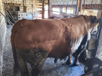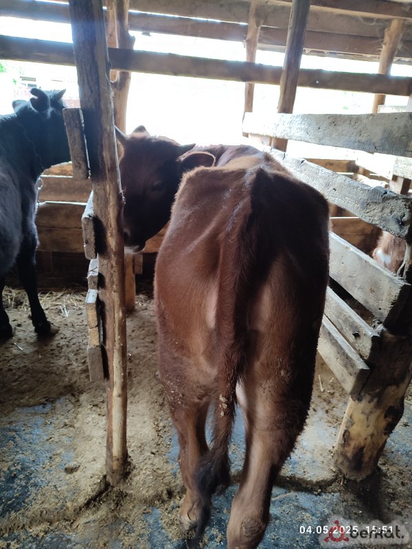 Продам телок на мясо вес от 140 кг. Телка после первого отела, можно с бычком, родился 7 апреля на подсосе. Бычок мясом 150 кг.