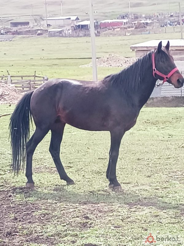 Ассаламу 1алейкум. продаётся жеребчик. 2года и 3 месяца. Рост 154-155. 6 раз садились. Очень адекватный, спокойный, подкован. Отец Американский рысак, ростом 170. Мать АнглаРысак. Причина продажи - нет времени заниматься. Цена 100т 89388870338