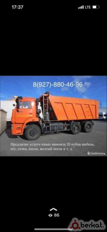 Поднять в списке Предлагаю услуги камаз мамонта щебень, пгс, сечка, песок, желтый песок и т. д. 89278804696