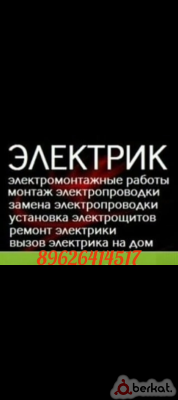 ? Электрик на дом и в офис! ? Ищете надежного электрика? Мы готовы помочь вам с любыми электромонтажными работами! ✔️ Установка и замена электропроводки ✔️ Подключение и ремонт электроприборов ✔️ Установка розеток, выключателей ✔️ Обеспечение электробезопасности ✔️ Экстренный вызов и консультации Почему выбирают нас? ✅ Гарантия качества и безопасности ✅ Быстрый выезд и выполнение работ ✅ Конкурентные цены Звоните прямо сейчас! ? Телефон: +7 (938) 545-16-12 или пишите в сообщение для консультации!
