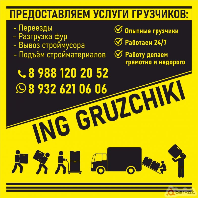 Услуги грузчиков и грузоперевозок: квартирно-офисные и домашние переезды; подъем и спуск мебели, стройматериалов; вывоз строительного мусора. Доставим ваш груз быстро, надежно и в оговоренные сроки. Связаться с нами: +7938 158 06 06 WhatsApp +79934575127